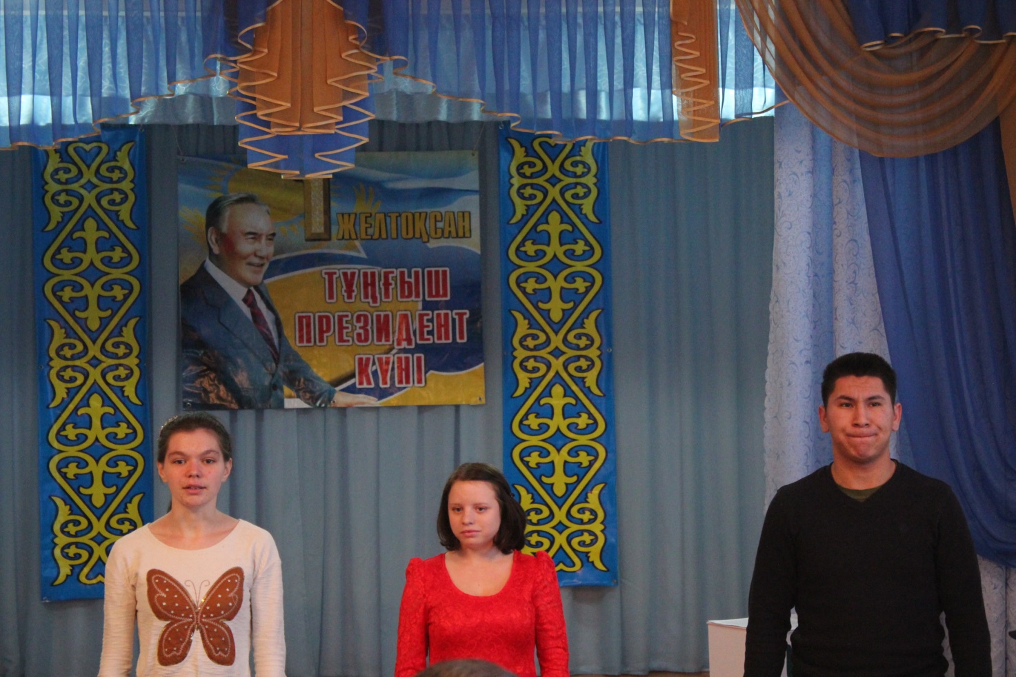 Қазақстан Республикасының тұңғыш Президенті күніне орай Облыстық жасөспірімдер үйінің тәрбиешісі А.Медееваның «Елін сүйген Елбасы» тақырыбында ашық тәрбие сағаты өтті. Ашық тәрбие сағатының мақсаты тәрбиеленушіліерге Елбасымыз Нұрсұлтан Әбішұлы Назарбаевтың елімізге сіңірген еңбегі, жүріп өткен дара жолы, отбасы туралы кеңінен мәлімет беру болатын. Алға қойған мақсатқа жетіп, тәрбиеленушілер Елбасы туралы білімдерінің жетік екендігін көрсетті.