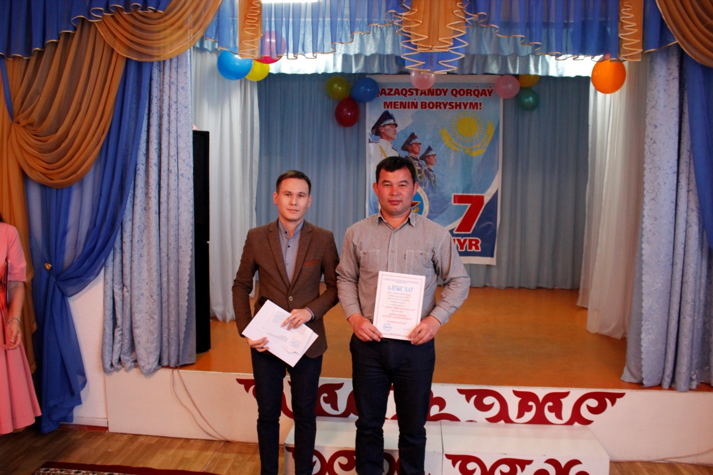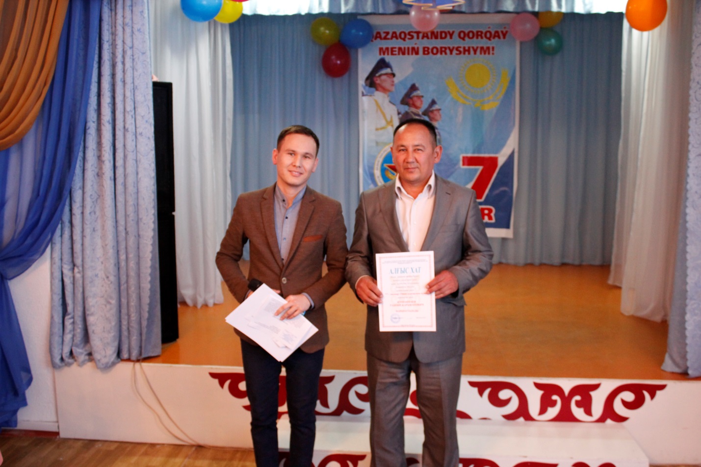 Кеште мекеме ер азаматтарын мерекелік концерпен қыз келіншектер Ер азаматтарға ән арнап, би билеп, түрлі сақыналық көріністер қойып, ойындар ойнатып мерекелерімен құттықтап, өз өнерлерімен мерекелік көңіл сыйлады. Мекеменің біріккен кәсіподақ төрайымы Нұрғазиев Ермек Ұйқасұлы біршама ер азаматтарды алғыс хаттармен марапатады.