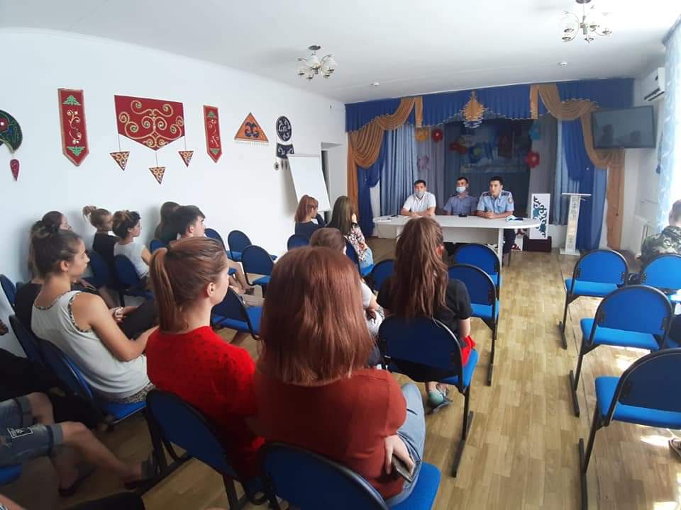 Бүгін құқық қорғау органдарының қызметкерлері полиция аға лейтенанты Аби Бағлан Арапбайұлы және полиция капитаны Козиев Нұрсұлтан Манатбекұлының қатысуымен тәрбиеленушілер арасында "Жастар арасындағы қылмыстың алдын алу, қылмыс түрлері мен оның жауапкершілігі" тақырыбында жоспарға сай түсіндіру—ағарту жұмыстары жүргізілді. Іс—шара барысында екі тарап еркін пікір алмасып, ой қозғалды.