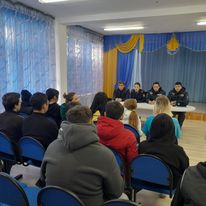 «Жастар арасында қылмыстың алдын-алу, қылмыс түрлері және жауапкершілік» тақырыбы бойынша Тараз қаласы ПБ 1-ПБ қызметкерлерінің атап айтқанда кәмелетке толмағандардың істері жөніндегі аға инспекторы Баян Зәбір Тасболатқызы, полиция аға лейтенанты Манас Надырбекұлы және полиция лейтенанты Нуркен Адилхановтың қатысуымен кездесу өткізілді.
