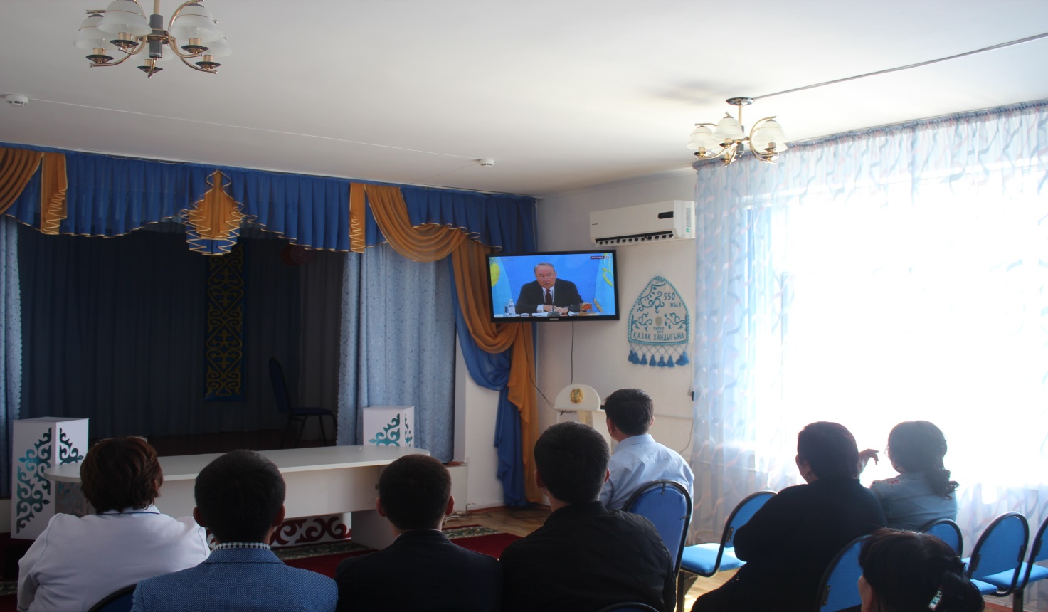 «Облыстық жасөспірімдер үйі» коммуналдық мемлекеттік мекемесі 2018 жылдың 5 қазан күні өткен Қазақстан Республикасының Мемелекет басшысы Н.Назарбаевтың Қазақстан халқына жыл сайынғы дәстүрлі Жолдауын телеарнадан тікелей эфир арқылы қызметкерлер тыңдады.