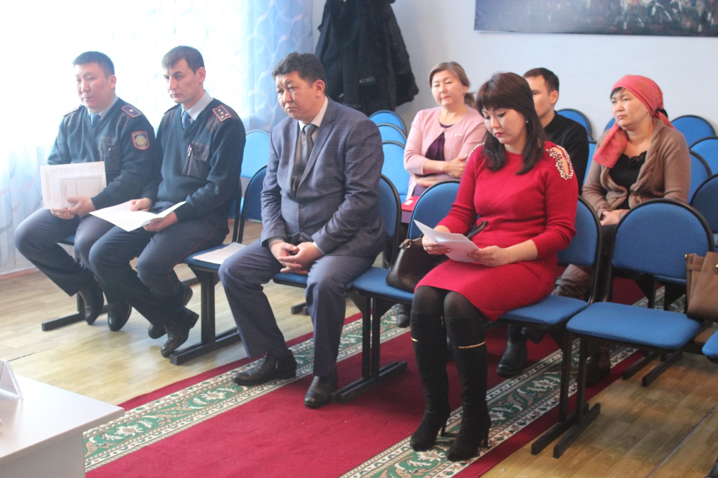 Қатысқандар: кеңес мүшелері – Т. Сабитова «Мирэкл» жетім балалар мен балалар үйлері түлектерін әлеуметтік бейімдеу орталығы қоғамдық бірлестігінің атқарушы директоры, М.Арын - Жамбыл облысы әкімдігінің білім басқармасының баланың құқықтарын қорғау бөлімінің басшысы, Қ. Байжанов - Ауыл» ХДПП Тараз қалалық филиалының төрағасы, А.Исаева - Тараз инновациялық көпсалалы колледжінің директордың тәрбие ісі жөніндегі орынбасары, Б. Джайнаков - Тараз қ. ІІБ 1ПБ ЖПҚ КТІЖ инспекторы полиция майоры.